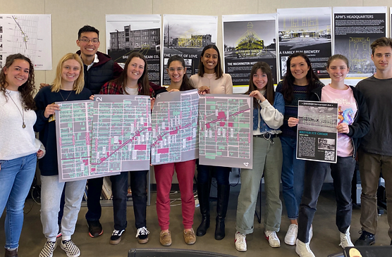 As the Graphics and Posters Lead for this project, I led a team of four other students to create the 10 historic posters, tour brochure, event banner, formatted map, presentation, event collateral, survey, and 47-page report, in addition to the logo, color palette, and style guide found on all materials. Softwares used include Adobe, ArcMap, G Suite, Rhino, and Social Explorer.